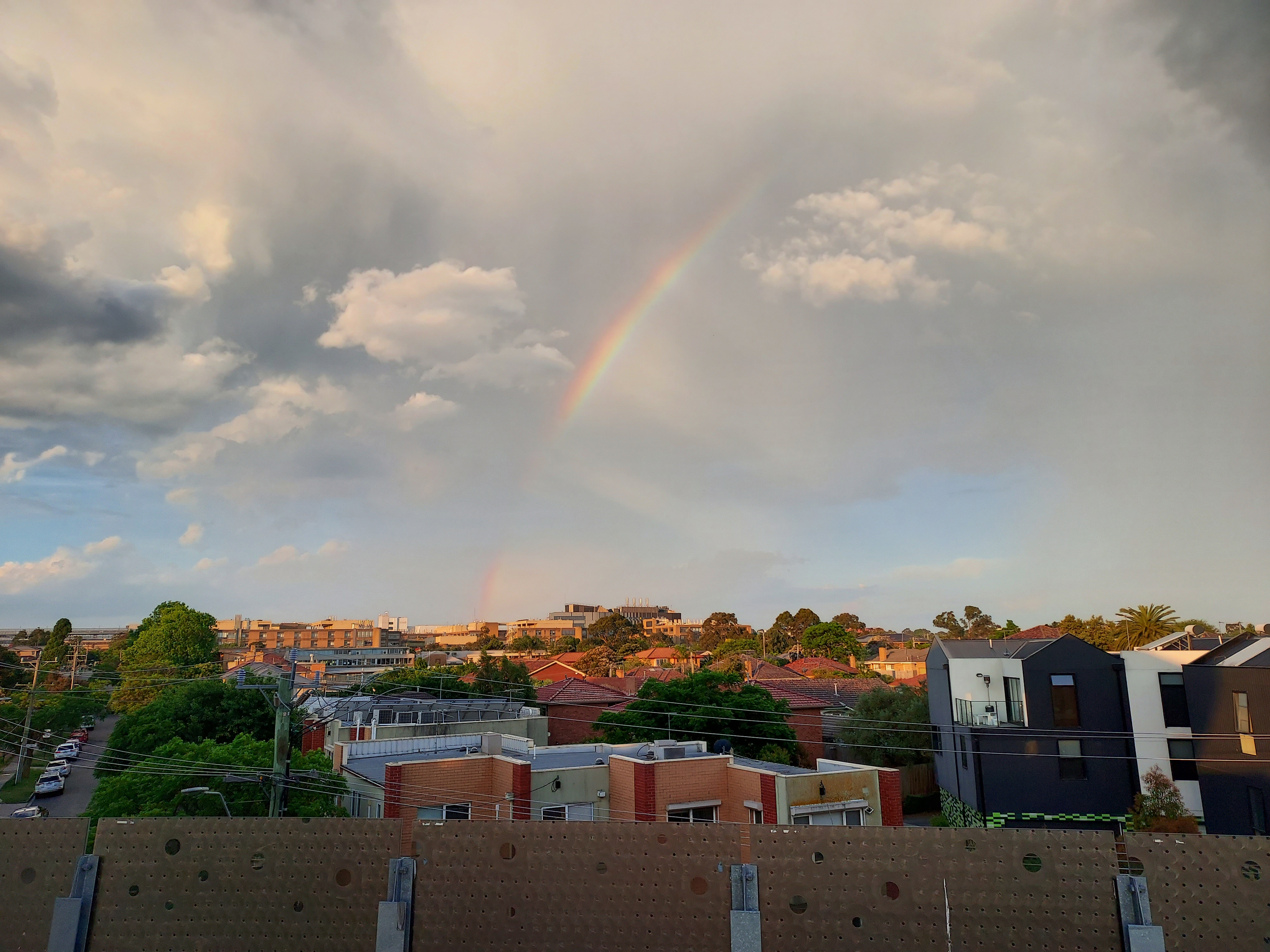 A rainbow over Monash Medical Centre, taken from the train line.