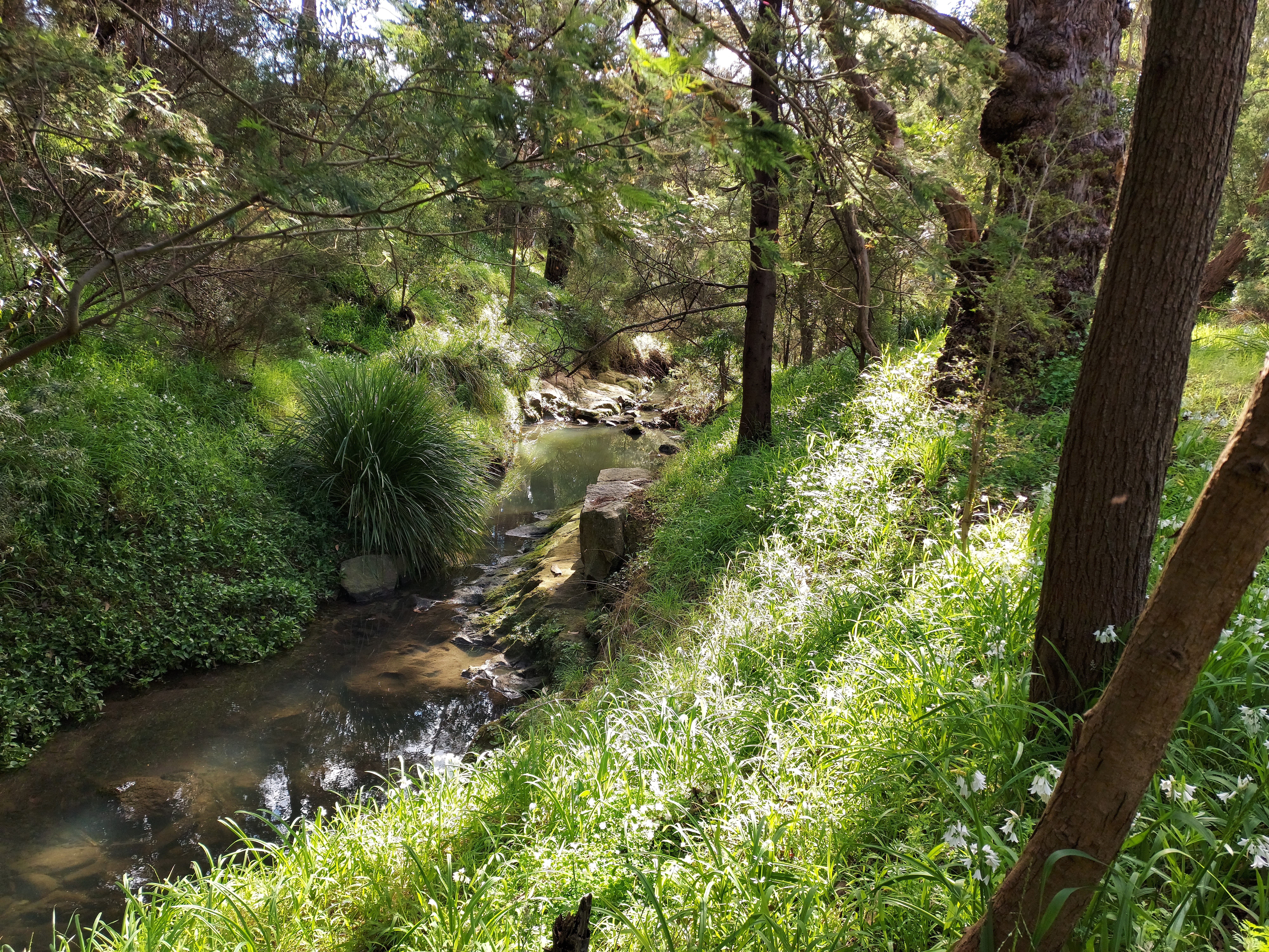 A creek through the suburbs, along the Scotchman's Creek trail.